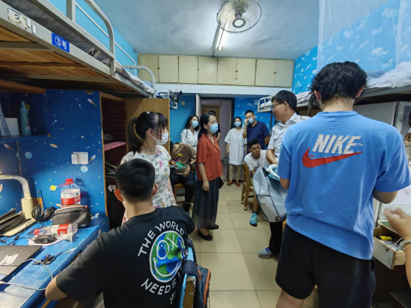 当天下午,在结束一天的入校报到后,院领导一行走访新生寝室,与2022级新生家长、本科新生深入交流,了解新生们入住与生活情况,听取新生家长对公司的意见建议;并鼓励同学们合理安排学习和生活,注意人身与财产安全,认真学习专业知识,利用好tyc33455cc太阳集团这个中外合作办学的国际化平台,努力提升自身综合素质,以昂扬向上的姿态度过难忘的大学4年。