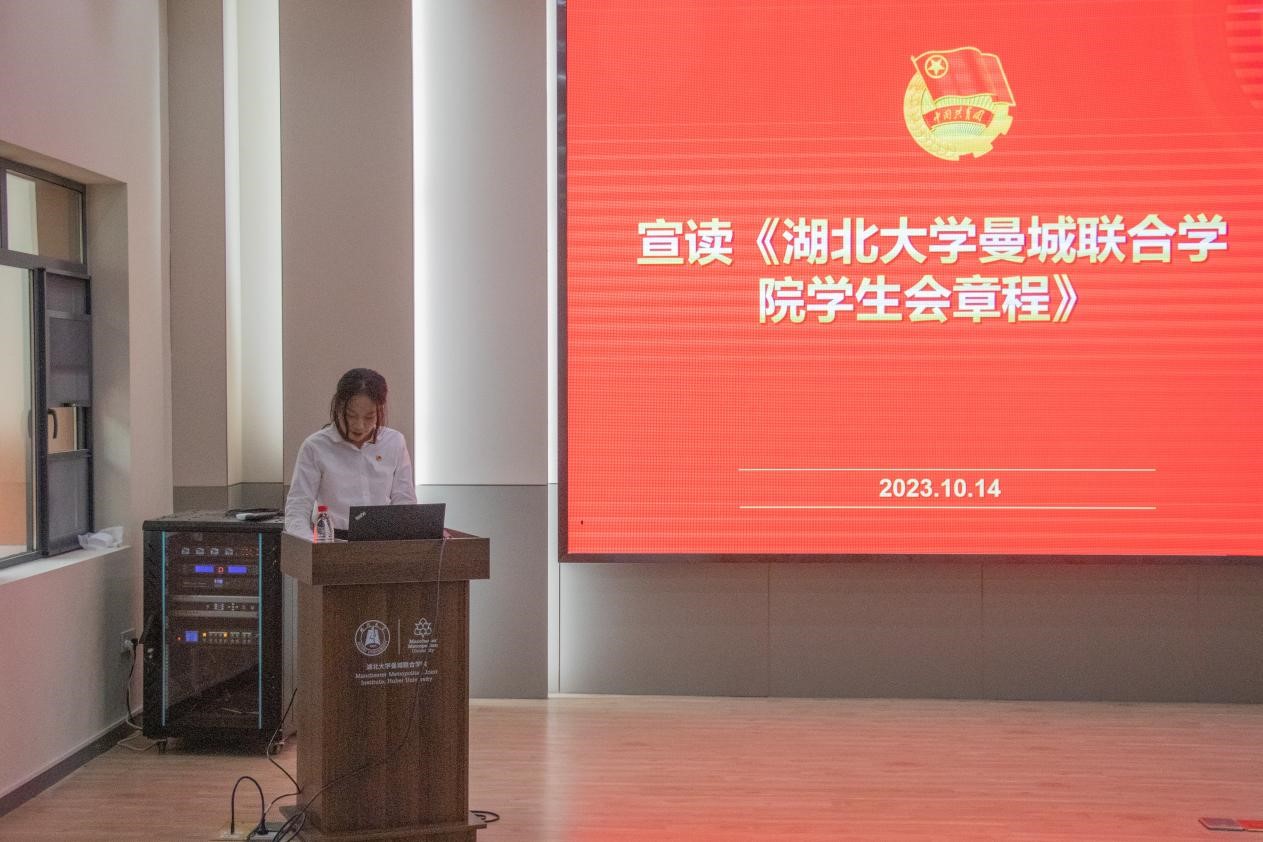 院团委组织部梁筱衡同学宣读《tyc33455cc太阳集团五四评优细则(修正案)》,院员工会刘一帆同学宣读《tyc33455cc太阳集团员工会章程》。